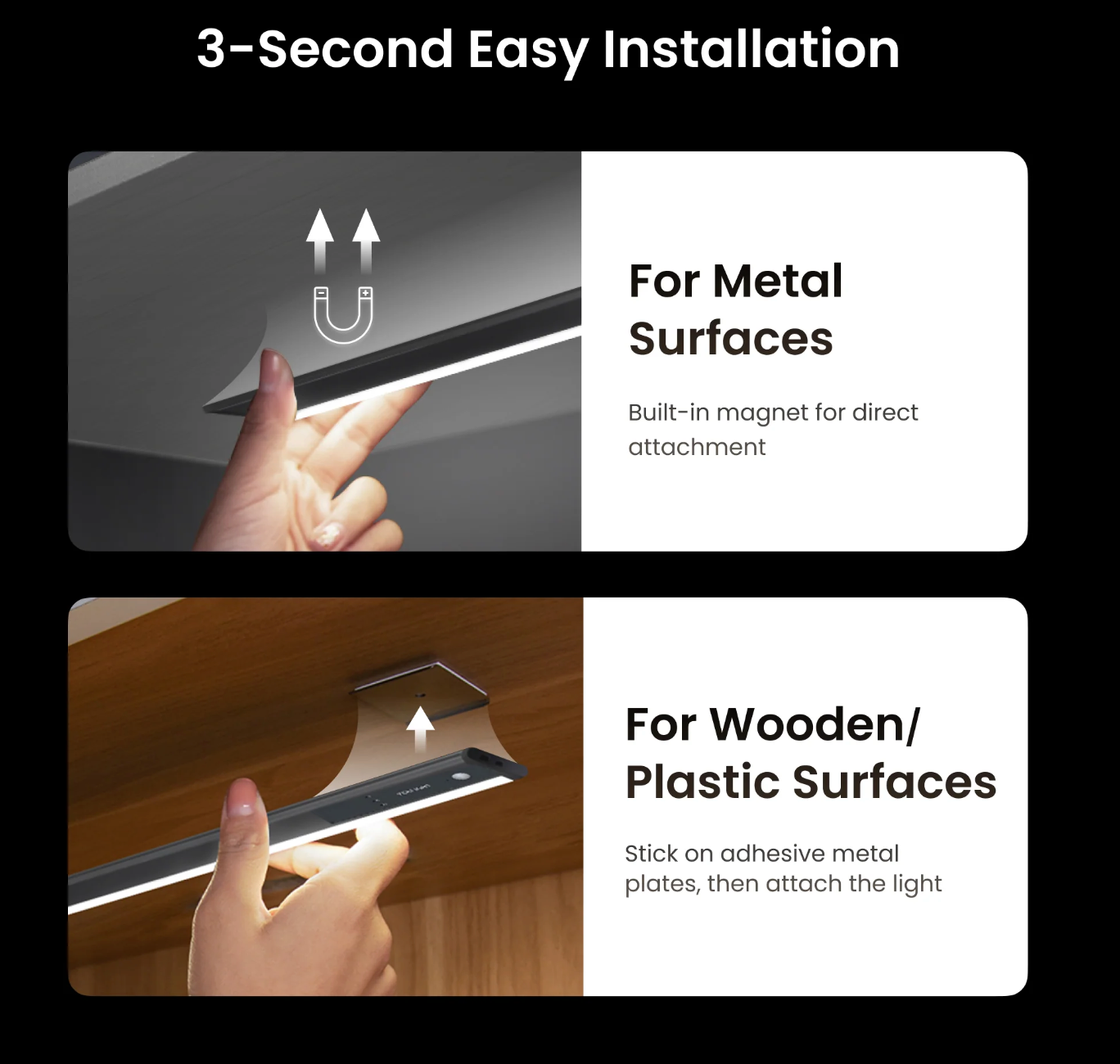 At just 0.27" thick, this discreet light blends into any room. Effortlessly attach it to walls, cabinets, or corners via magnetic mounting—no tools required—and enjoy clutter-free, space-saving versatility. -